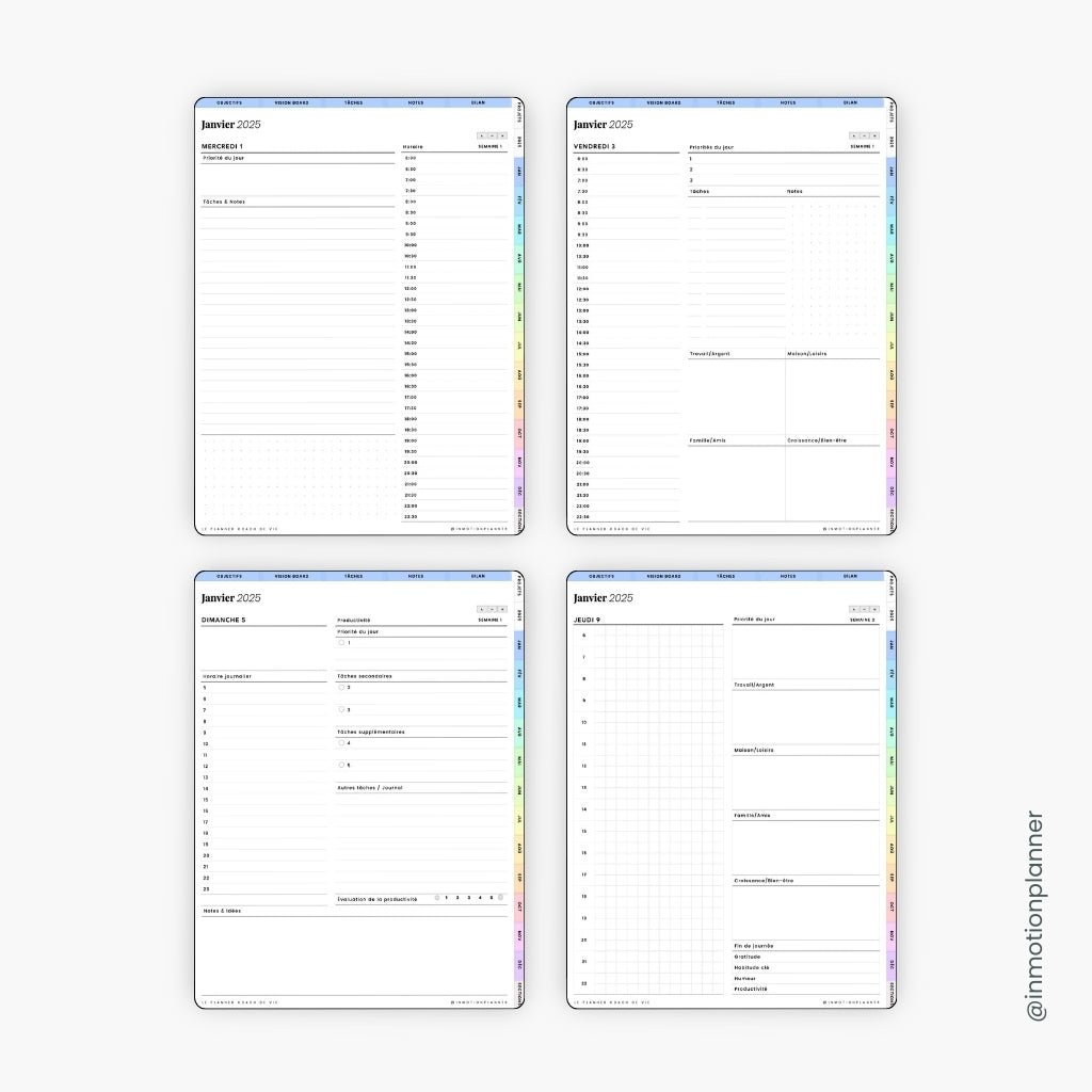 • 4 versions de pages journalières adaptées à différents rythmes (4 fichiers)